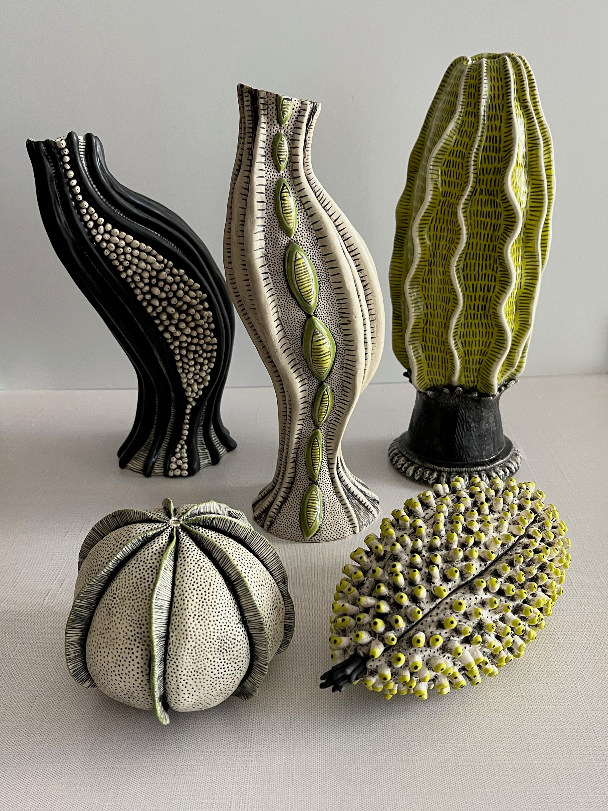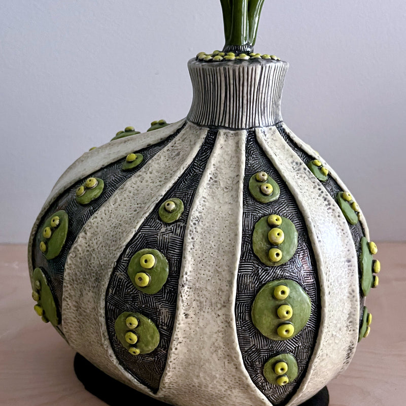 This is where you'll find a variety of one-of-a-kind functional ceramic objects for the table and home. Everything I make is hand built in small batches from slabs, coils, pinching or carving and embellished with my own unique visual language.The decorative objects that I create are beautiful as well as practical and are meant to be used...often.